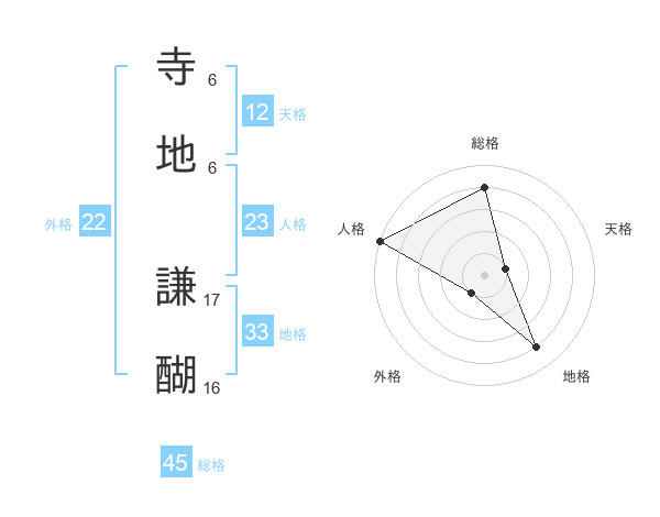 寺地 謙醐さんの総格は45画の4点!