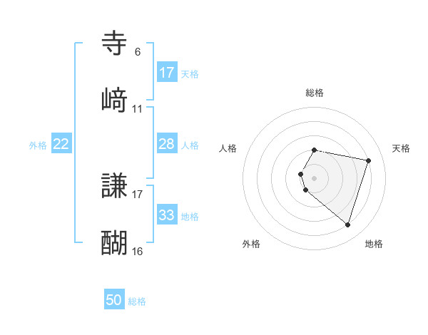 寺﨑 謙醐さんの総格は50画の2点!