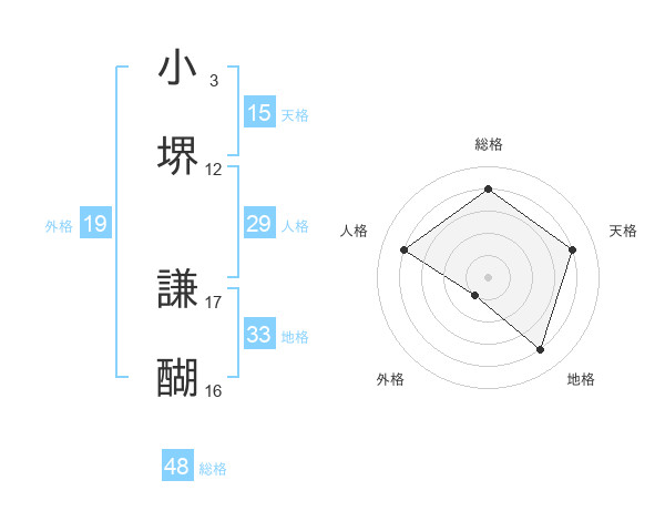 小堺 謙醐さんを姓名の画数から五運を鑑定