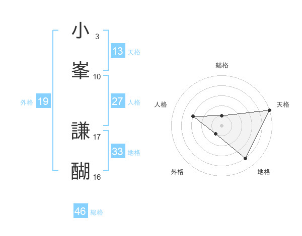 小峯 謙醐さんの天格は13画の5点!