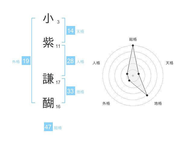 小紫 謙醐さんの総格は47画の5点!