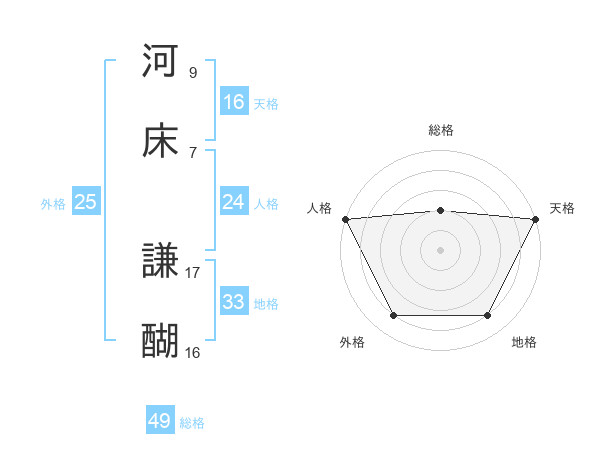 河床 謙醐さんの総格は49画の2点!