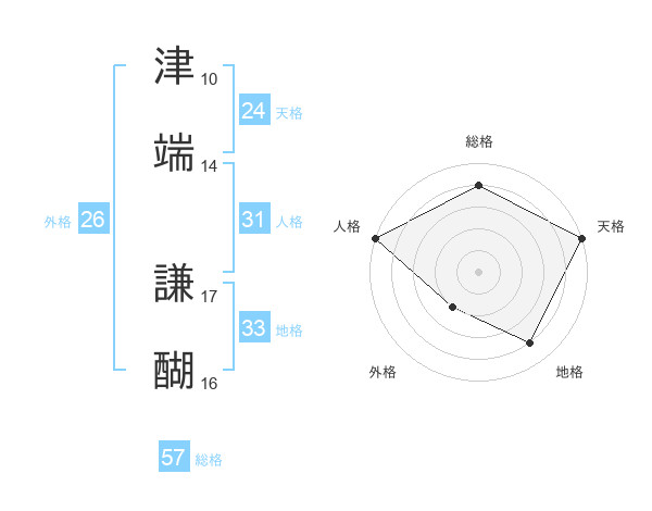 津端 謙醐さんを姓名の画数から五運を鑑定