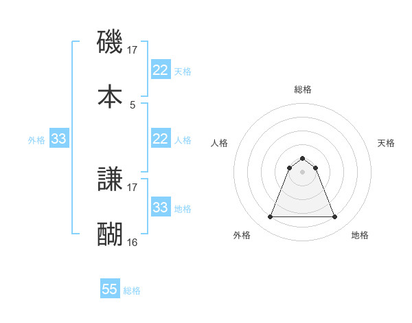 磯本 謙醐さんの外格は33画の4点!