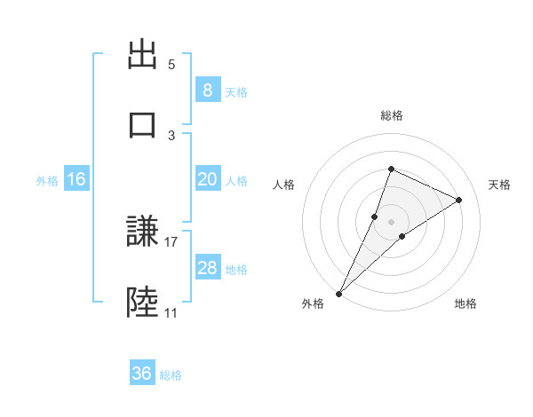 出口 謙陸さんの天格は8画の4点!