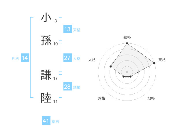 小孫 謙陸さんの天格は13画の5点!