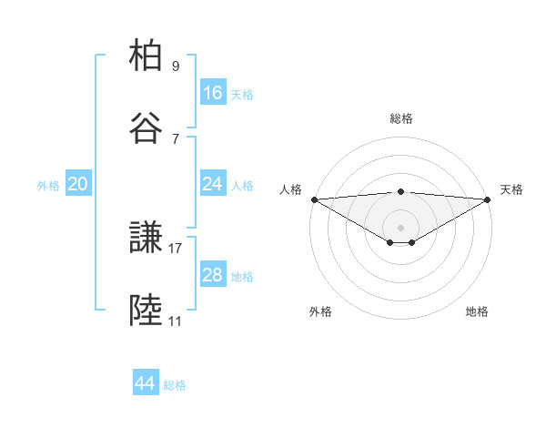 柏谷 謙陸さんを姓名の画数から五運を鑑定
