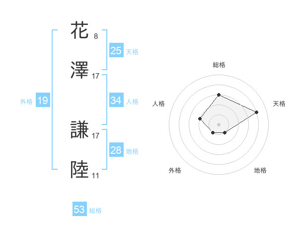 花澤 謙陸さんを姓名の画数から五運を鑑定