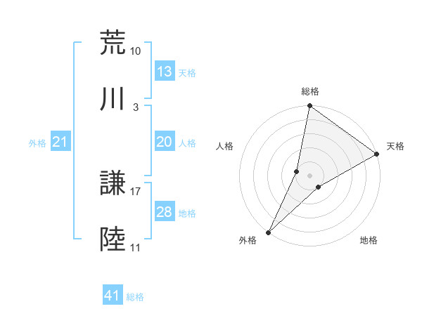 荒川 謙陸さんを姓名の画数から五運を鑑定