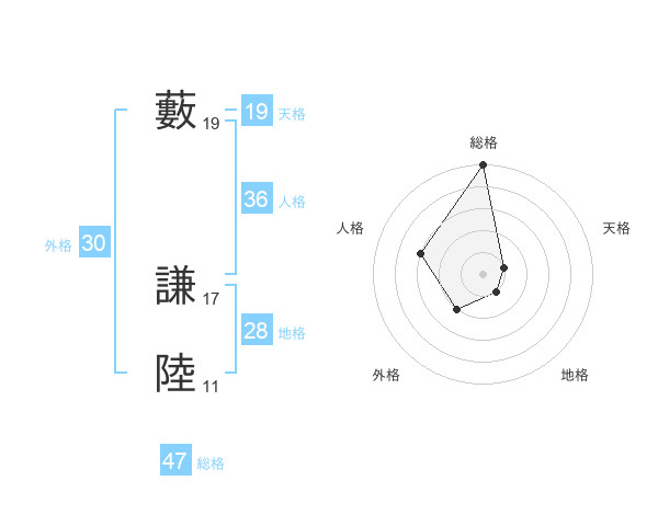 藪 謙陸さんを姓名の画数から五運を鑑定