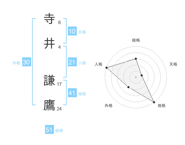寺井 謙鷹さんの総格は51画の3点!