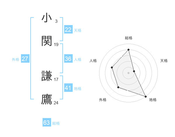 小関 謙鷹さんを姓名の画数から五運を鑑定