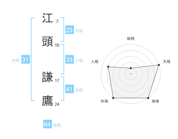 江頭 謙鷹さんを姓名の画数から五運を鑑定