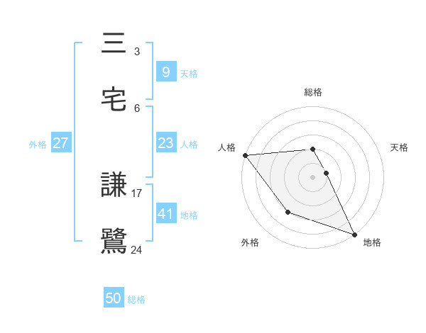 三宅 謙鷺さんの総格は50画の2点!