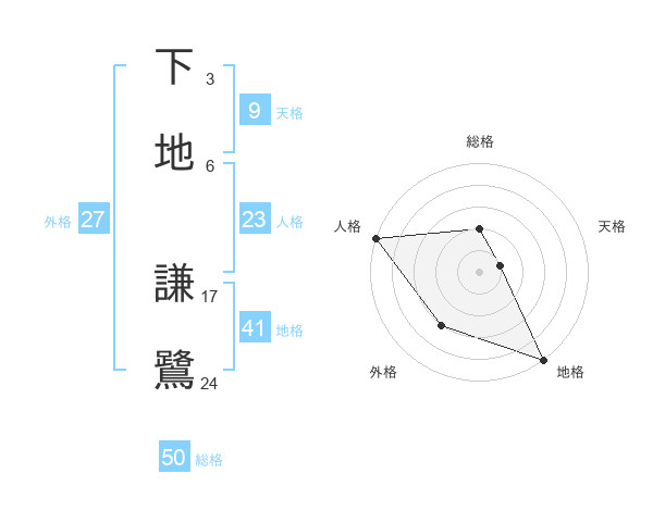 下地 謙鷺さんを姓名の画数から五運を鑑定