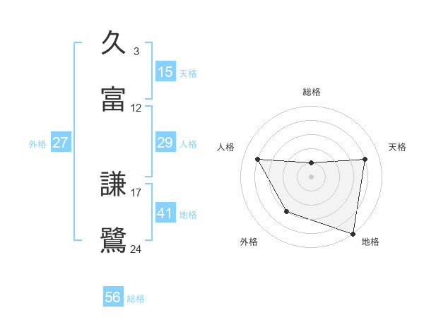 久富 謙鷺さんの総格は56画の1点!