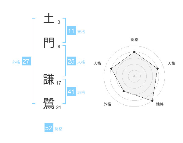 土門 謙鷺さんを姓名の画数から五運を鑑定