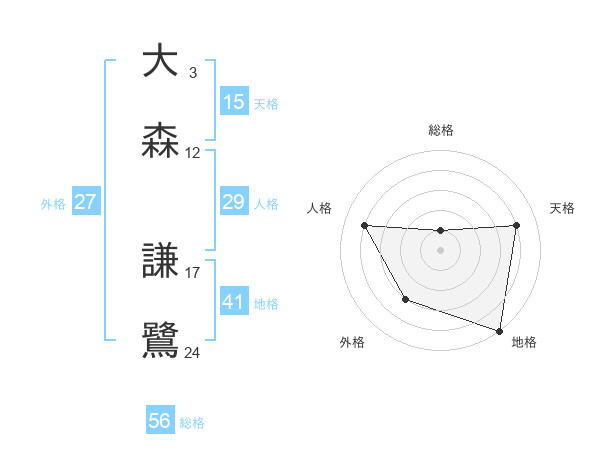 大森 謙鷺さんを姓名の画数から五運を鑑定