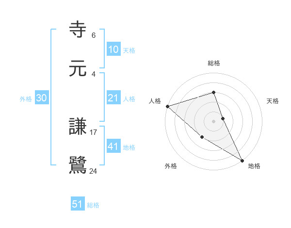 寺元 謙鷺さんを姓名の画数から五運を鑑定