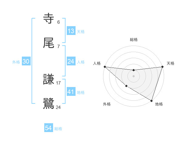 寺尾 謙鷺さんの総格は54画の1点!