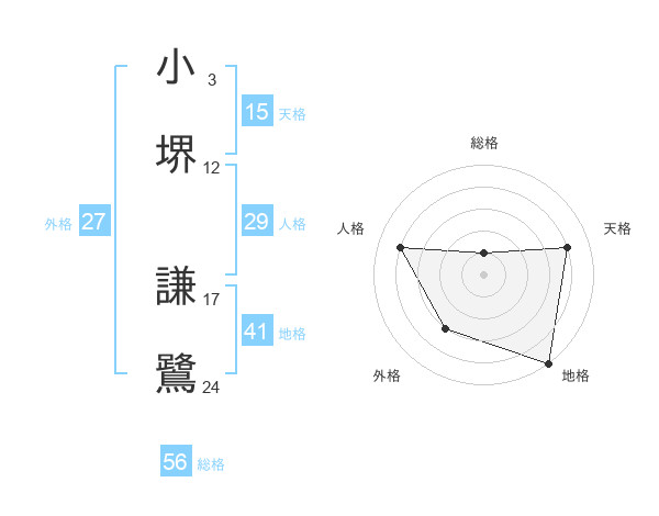 小堺 謙鷺さんを姓名の画数から五運を鑑定