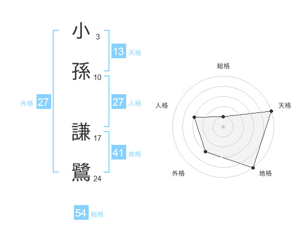 小孫 謙鷺さんの総格は54画の1点!