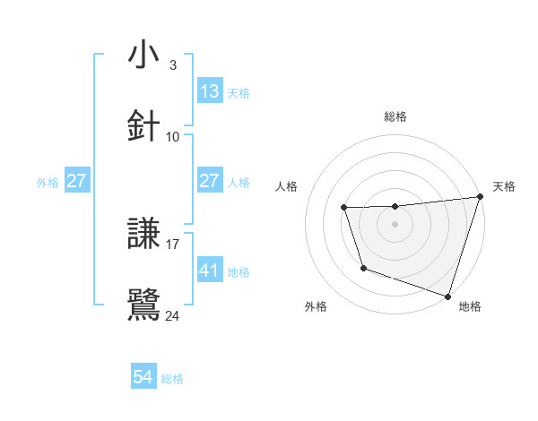 小針 謙鷺さんの総格は54画の1点!