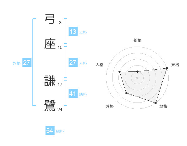 弓座 謙鷺さんの総格は54画の1点!