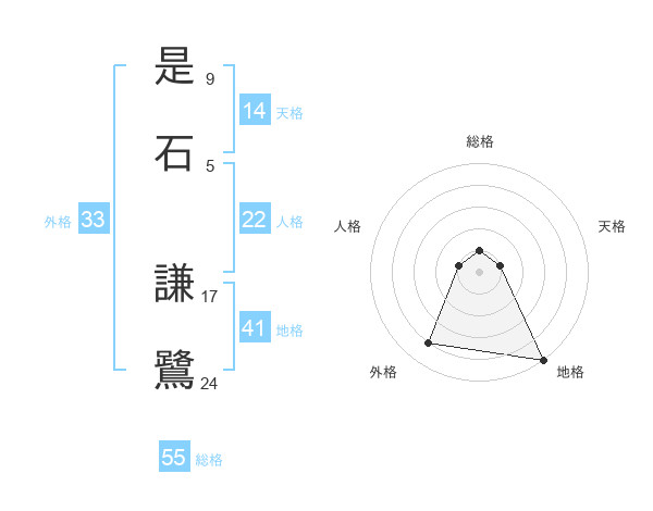 是石 謙鷺さんを姓名の画数から五運を鑑定