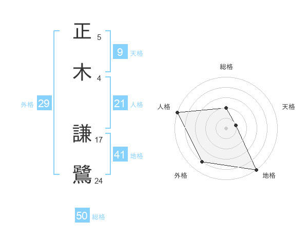 正木 謙鷺さんを姓名の画数から五運を鑑定