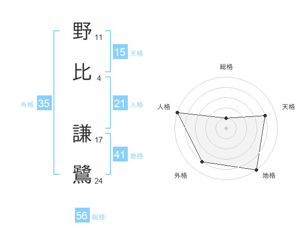 野比 謙鷺さんの総格は56画の1点!