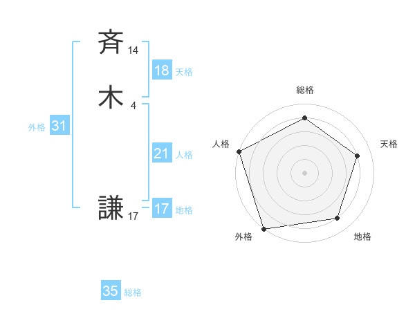 斉木 謙さんの総格は35画の4点!