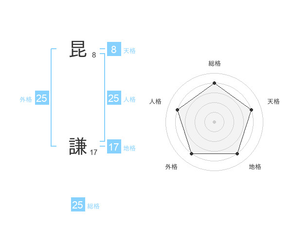 昆 謙さんの総格は25画の4点!