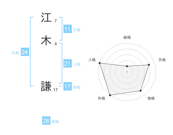 江木 謙さんの天格は11画の4点!