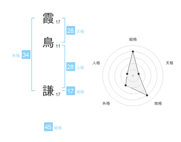 霞鳥 謙さんの総格は45画の4点!