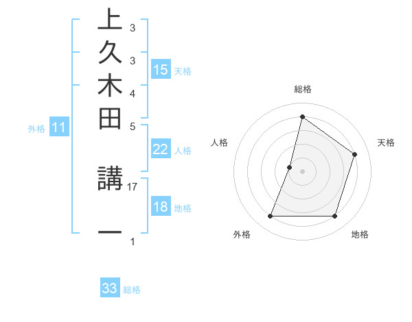 上久木田 講一さんを姓名の画数から五運を鑑定