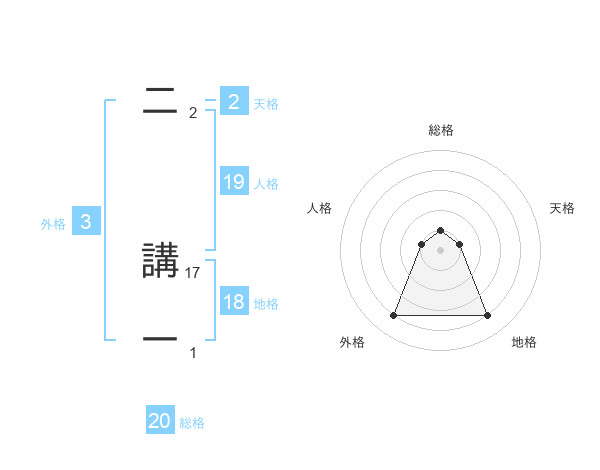二 講一さんの総格は20画の1点!