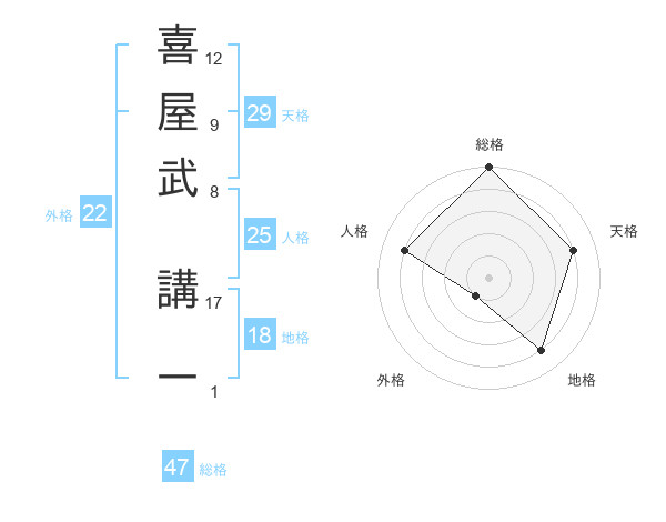 喜屋武 講一さんの総格は47画の5点!