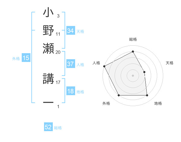 小野瀬 講一さんを姓名の画数から五運を鑑定