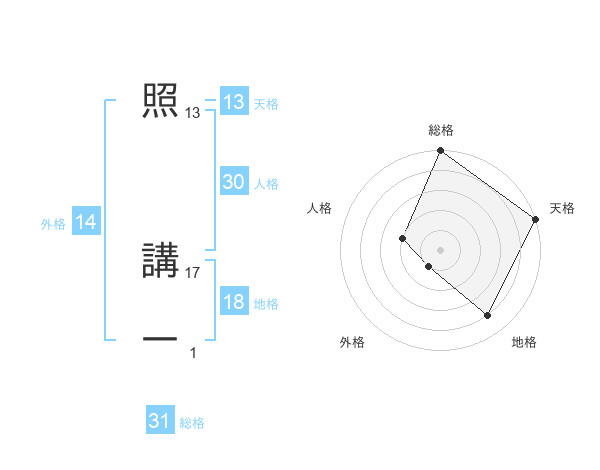 照 講一さんの総格は31画の5点!