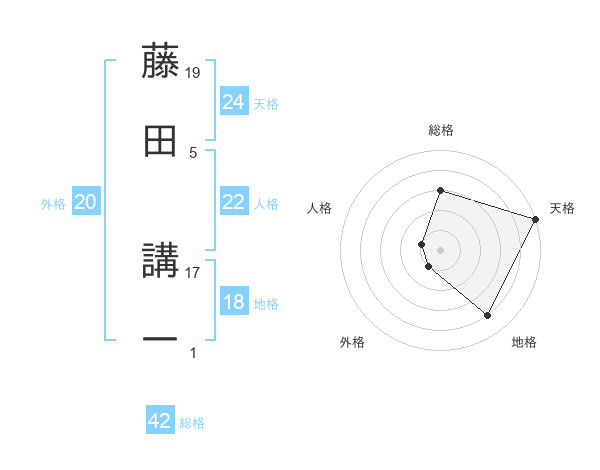藤田 講一さんの天格は24画の5点