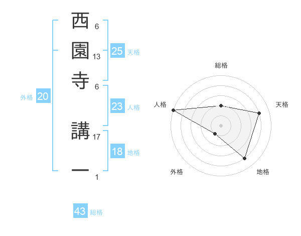 西園寺 講一さんの総格は43画の2点!