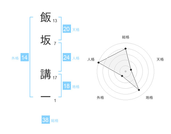 飯坂 講一さんの総格は38画の4点!