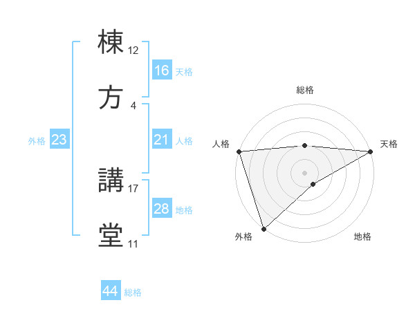 棟方 講堂さんの総格は44画の2点!