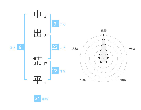 中出 講平さんの総格は31画の5点!