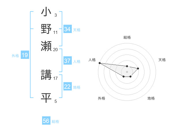 小野瀬 講平さんを姓名の画数から五運を鑑定