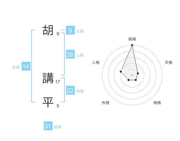 胡 講平さんの総格は31画の5点!