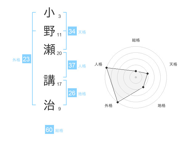 小野瀬 講治さんを姓名の画数から五運を鑑定