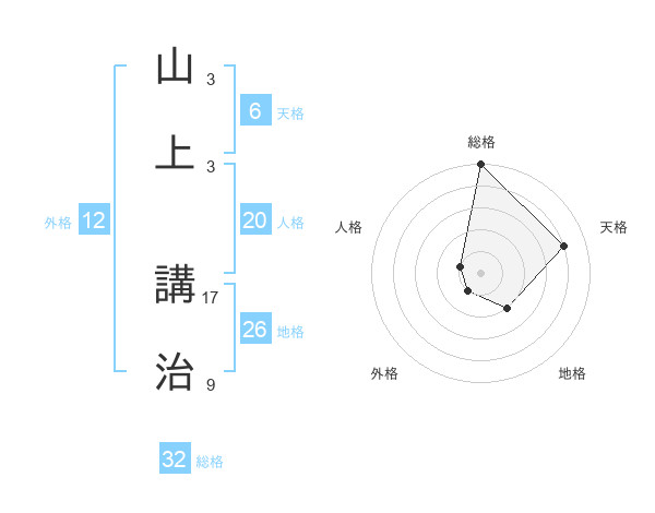 山上 講治さんの総格は32画の5点!