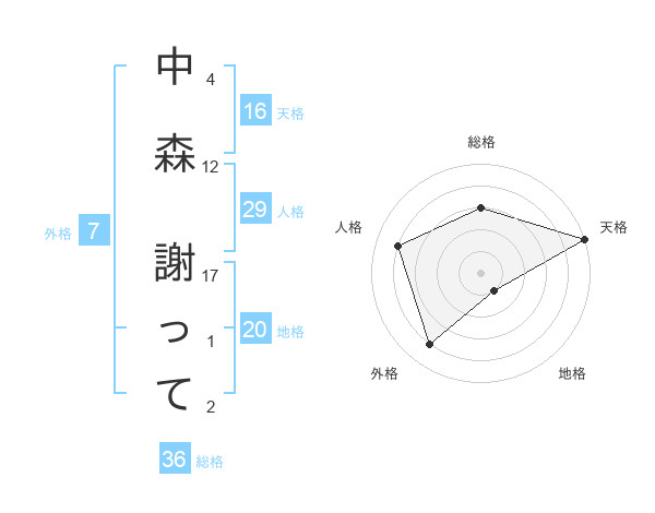中森 謝ってさんを姓名の画数から五運を鑑定